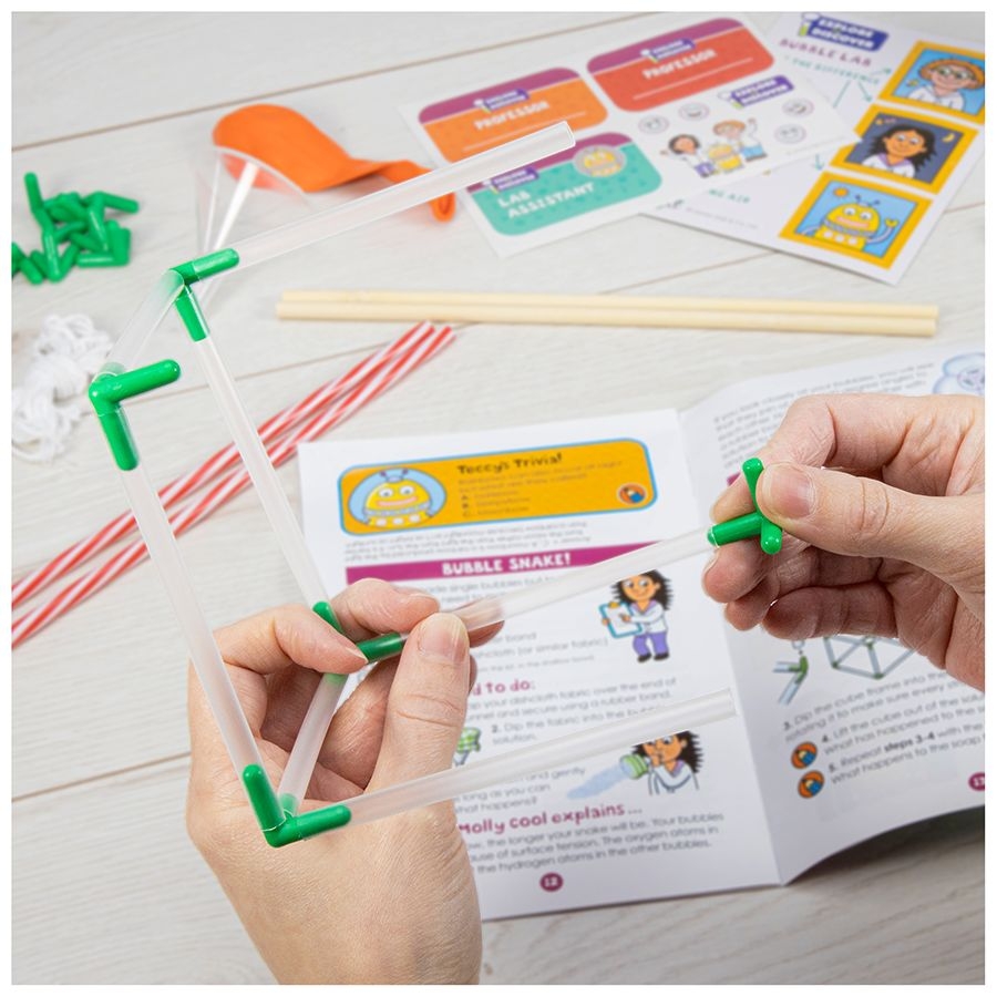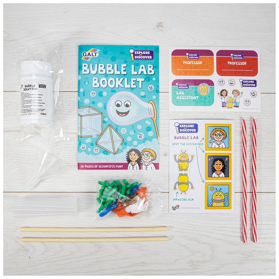 Οι νέοι επίδοξοι επιστήμονες μπορούν να μάθουν πώς να δημιουργούν τεράστιες φυσαλίδες, εντυπωσιακές φυσαλίδες με ιδιαίτερη τρισδιάστατη γεωμετρία, ένα φίδι από φυσαλίδες και να ανακαλύψουν πολλά άλλα συναρπαστικά κόλπα με βάση το νερό. Στο «Bubble Lab» περιλαμβάνονται 7 διασκεδαστικά πειράματα.