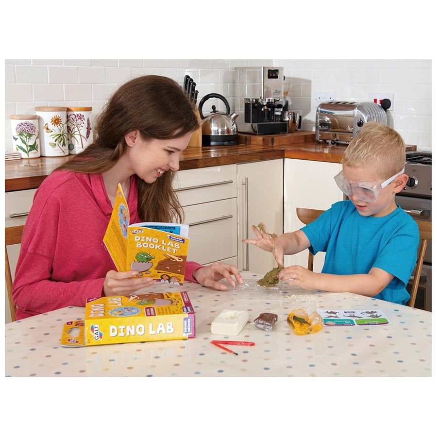 Οι νέοι επίδοξοι επιστήμονες μπορούν να σκάψουν και να ξεθάψουν ένα εντυπωσιακό απολίθωμα δεινοσαύρου, να πειραματιστούν με το κεχριμπαρένιο slime, να δημιουργήσουν πατημασιές δεινοσαύρων και να ανακαλύψουν τα πάντα για τα μοναδικά αυτά προϊστορικά πλάσματα. Στο «Dino Lab» περιλαμβάνονται 3 διασκεδαστικά πειράματα.