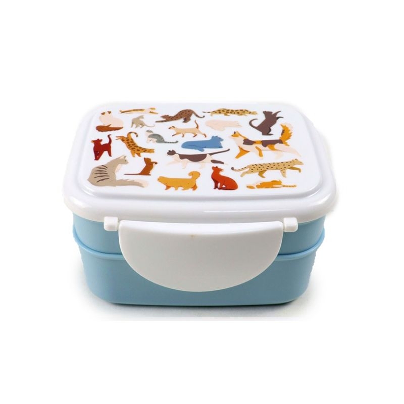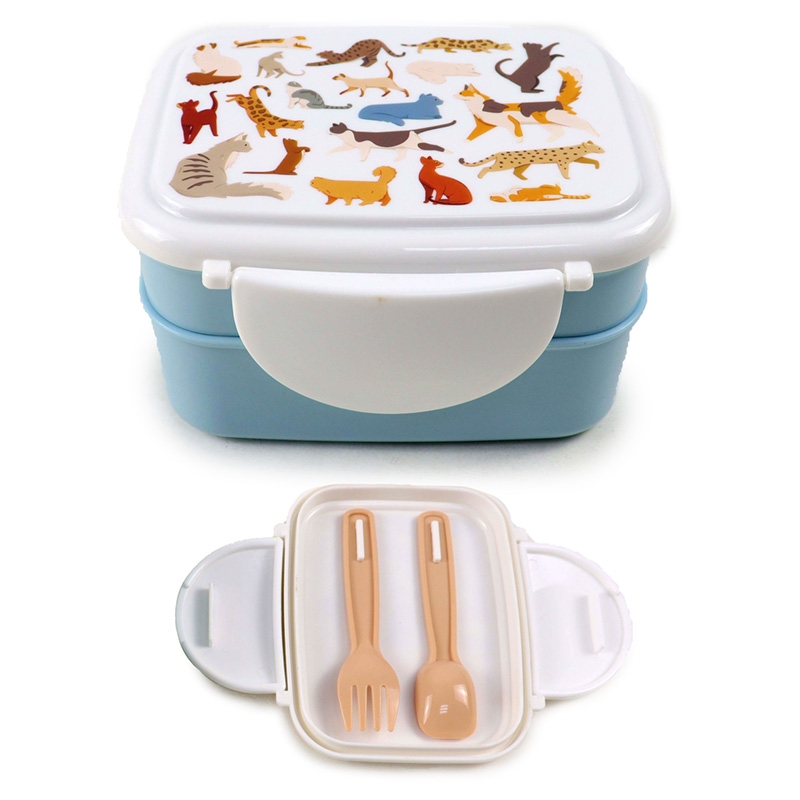 Φαγητοδοχείο Πλαστικό με Δύο Δοχεία, Διαχωριστικά, Κουτάλι & Πιρούνι - Cats - Puckator