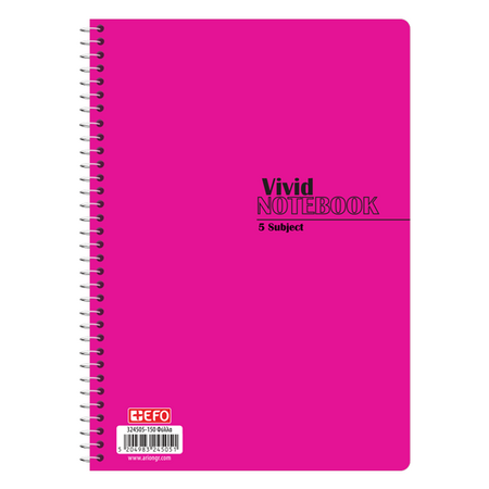 Τετράδιο σπιράλ 5 θέματα της σειράς Vivid Notebook από την Efo σε 4 σχέδια. Διαθέτει εξώφυλλο από χαρτόνι και 120 φύλλα 70gr.