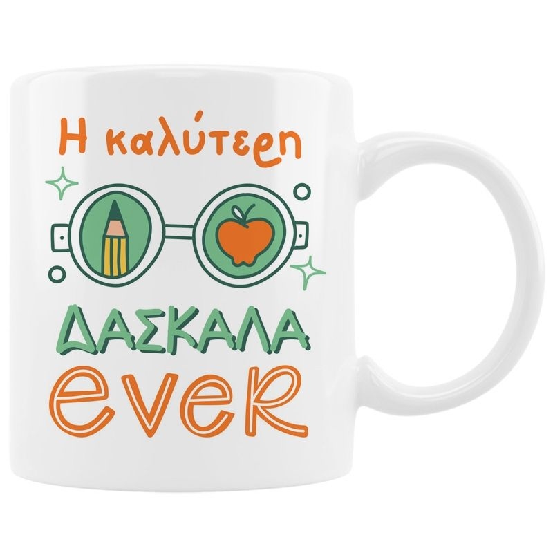 Εκφράστε την ευγνωμοσύνη σας και χαρίστε ένα χαμόγελο στην αγαπημένη σας δασκάλα με την κούπα Καλύτερη δασκάλα ever! Αυτή η πανέμορφη κούπα είναι ο ιδανικός τρόπος να δείξετε πόσο πολύ εκτιμάτε τη δουλειά της και να την κάνετε να νιώσει ξεχωριστή. Είναι το τέλειο δώρο για κάθε δασκάλα.