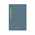 Προσθέστε μία μίνιμαλ πινελιά πολυτέλειας, αλλά και λειτουργικότητας στις καθημερινές σας σημειώσεις, με το νέο σημειωματάριο της εταιρείας Somewhere. Με vegan, απαλό, δερμάτινο εξώφυλλο σε Teal Blue απόχρωση, που περιλαμβάνει θήκη για το στυλό αλλά και το κινητό σας. Συνοδεύεται από ένα υπέροχο στυλό σε χρυσό χρώμα. Επίσης, περιλαμβάνει 160 ποιοτικές, ριγέ σελίδες των 100 γραμμαρίων για να τις αξιοποιήσετε όπως εσείς θέλετε.