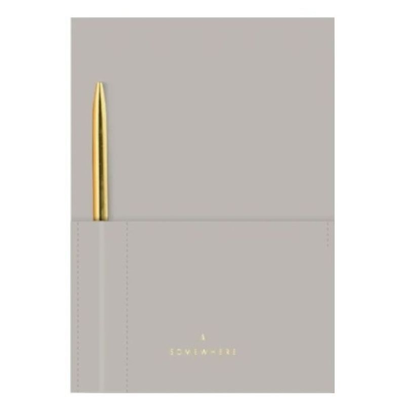 Προσθέστε μία μίνιμαλ πινελιά πολυτέλειας, αλλά και λειτουργικότητας στις καθημερινές σας σημειώσεις, με το νέο σημειωματάριο της εταιρείας Somewhere. Με vegan, απαλό, δερμάτινο εξώφυλλο σε Stone Gray απόχρωση, που περιλαμβάνει θήκη για το στυλό αλλά και το κινητό σας. Συνοδεύεται από ένα υπέροχο στυλό σε χρυσό χρώμα. Επίσης, περιλαμβάνει 160 ποιοτικές, ριγέ σελίδες των 100 γραμμαρίων για να τις αξιοποιήσετε όπως εσείς θέλετε.