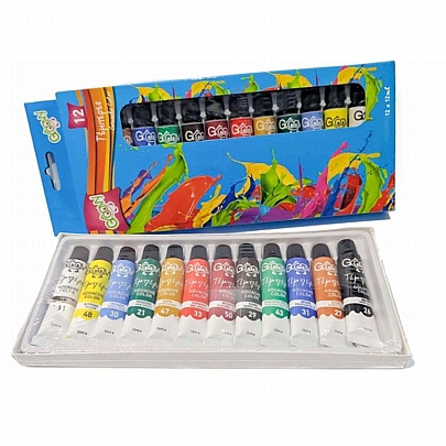 Η συσκευασία περιλαμβάνει: 12 κλασικά χρώματα & 1 πινέλο.