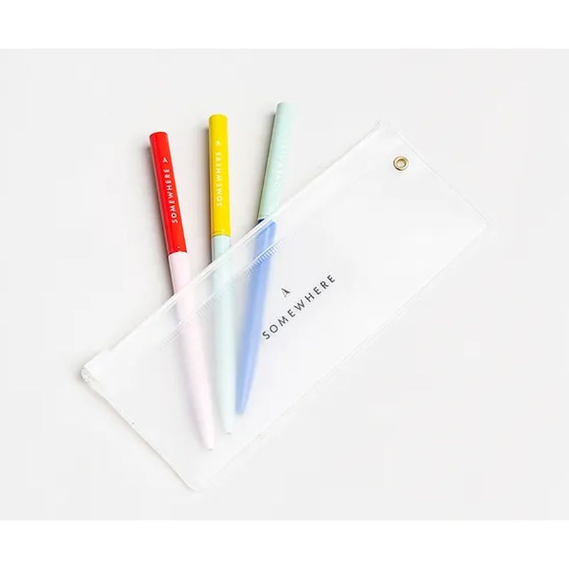 Τρία πανέμορφα στυλό μέσα σε μικρή Zip διάφανη κασετίνα! Τα στυλό είναι άνετα στο κράτημα και χάρη στο υψηλής ποιότητας μελάνι, το γράψιμο είναι ιδιαίτερα εύκολο. Με 3 διαφορετικούς χρωματικούς συνδυασμούς τα στυλό είναι έτοιμα να κλέψουν όλα τα βλέμματα!