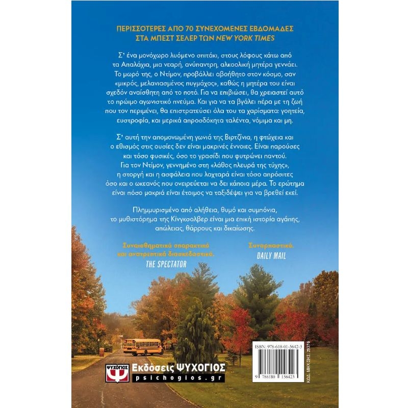 ΠΕΡΙΣΣΟΤΕΡΕΣ ΑΠΟ 70 ΣΥΝΕΧΟΜΕΝΕΣ ΕΒΔΟΜΑΔΕΣ ΣΤΑ ΜΠΕΣΤ ΣΕΛΕΡ ΤΩΝ NEW YORK TIMES. Σ’ ένα μονόχωρο λυόμενο σπιτάκι, στους λόφους κάτω από τα Απαλάχια, μια νεαρή, ανύπαντρη, αλκοολική μητέρα γεννάει. Το μωρό της, ο Ντίμον, προβάλλει αβοήθητο στον κόσμο, σαν «μικρός, μελανιασμένος πυγμάχος», καθώς η μητέρα του είναι σχεδόν αναίσθητη από το ποτό. Για να επιβιώσει, θα χρειαστεί αυτό το πρώιμο αγωνιστικό πνεύμα. Και για να τα βγάλει πέρα με τη ζωή που τον περιμένει, θα επιστρατεύσει όλα του τα χαρίσματα: γοητεία, ευστροφία, και μερικά απροσδόκητα ταλέντα, νόμιμα και μη. Σ’ αυτή την απομονωμένη γωνιά της Βιρτζίνια, η φτώχεια και ο εθισμός στις ουσίες δεν είναι μακρινές έννοιες. Είναι παρούσες και τόσο φυσικές, όσο το γρασίδι που φυτρώνει παντού. Για τον Ντίμον, γεννημένο στη «λάθος πλευρά της τύχης», η στοργή και η ασφάλεια που λαχταρά είναι τόσο απρόσιτες όσο και ο ωκεανός που ονειρεύεται να δει κάποια μέρα. Το ερώτημα είναι πόσο μακριά είναι έτοιμος να ταξιδέψει για να βρεθεί εκεί. Πλημμυρισμένο από αλήθεια, θυμό και συμπόνια, το μυθιστόρημα της Κίνγκσολβερ είναι μια επική ιστορία αγάπης, απώλειας, θάρρους και δικαίωσης.
