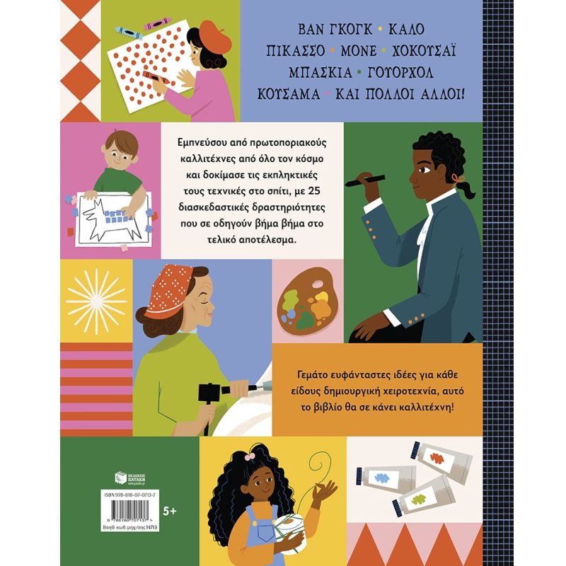 Εμπνεύσου από πρωτοποριακούς καλλιτέχνες από όλο τον κόσμο και δοκίμασε τις εκπληκτικές τους τεχνικές στο σπίτι, με 25 διασκεδαστικές δραστηριότητες που σε οδηγούν βήμα βήμα στο τελικό αποτέλεσμα.