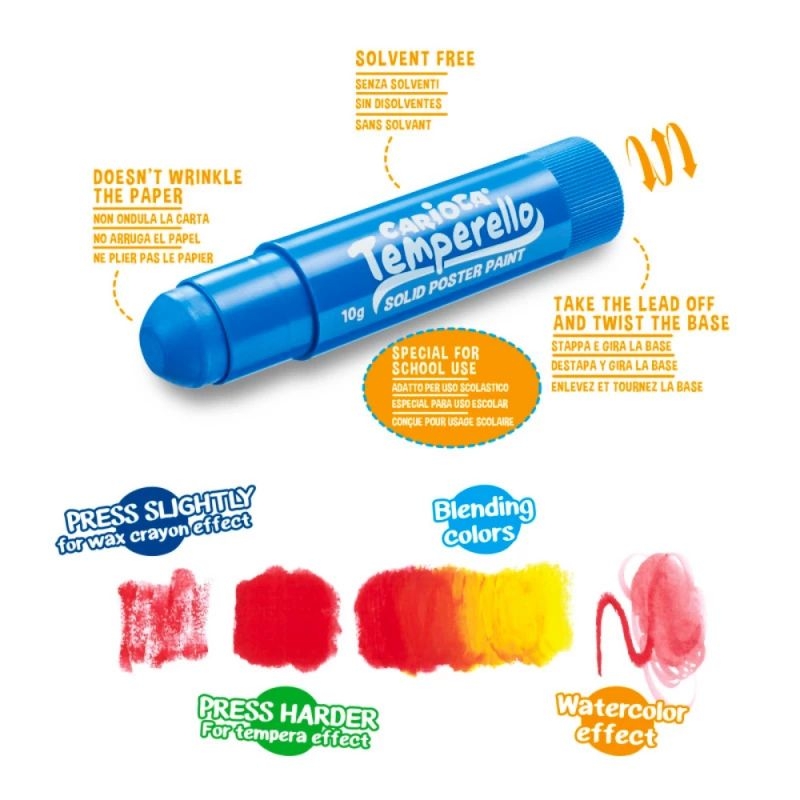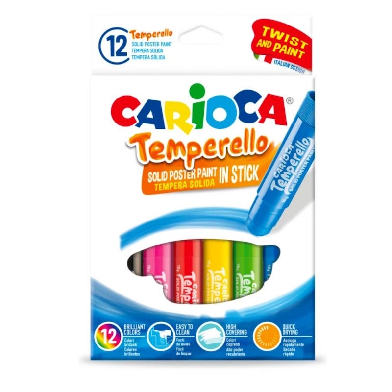 Στερεά τέμπερα σε μορφή μαρκαδόρου 12 Κλασσικών χρωμάτων - Carioca Temperello