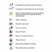 Υλικό:18/8 από ανοξείδωτο χάλυβα ποιότητας τροφίμων. 100% χωρίς BPA, χωρίς φθαλικές ενώσεις, χωρίς τοξίνες.