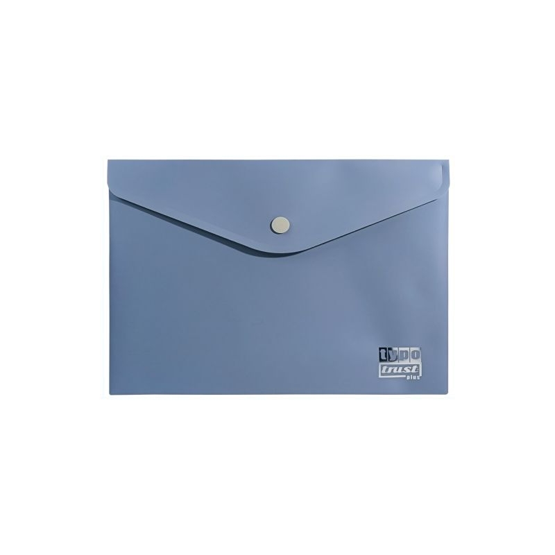 Φάκελος αρχειοθέτησης Α5, χρώματος morandi μπλε, με κουμπί, της Typotrust. Eίναι φτιαγμένος από ανθεκτικό πλαστικό και κλείνει με κουμπί για μεγαλύτερη ασφάλεια και μεταφορά των εγγράφων.