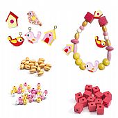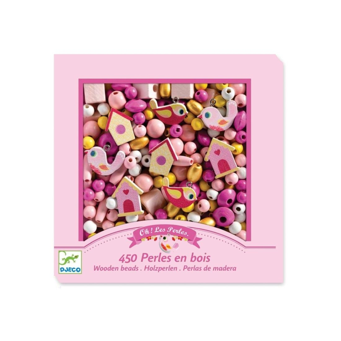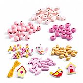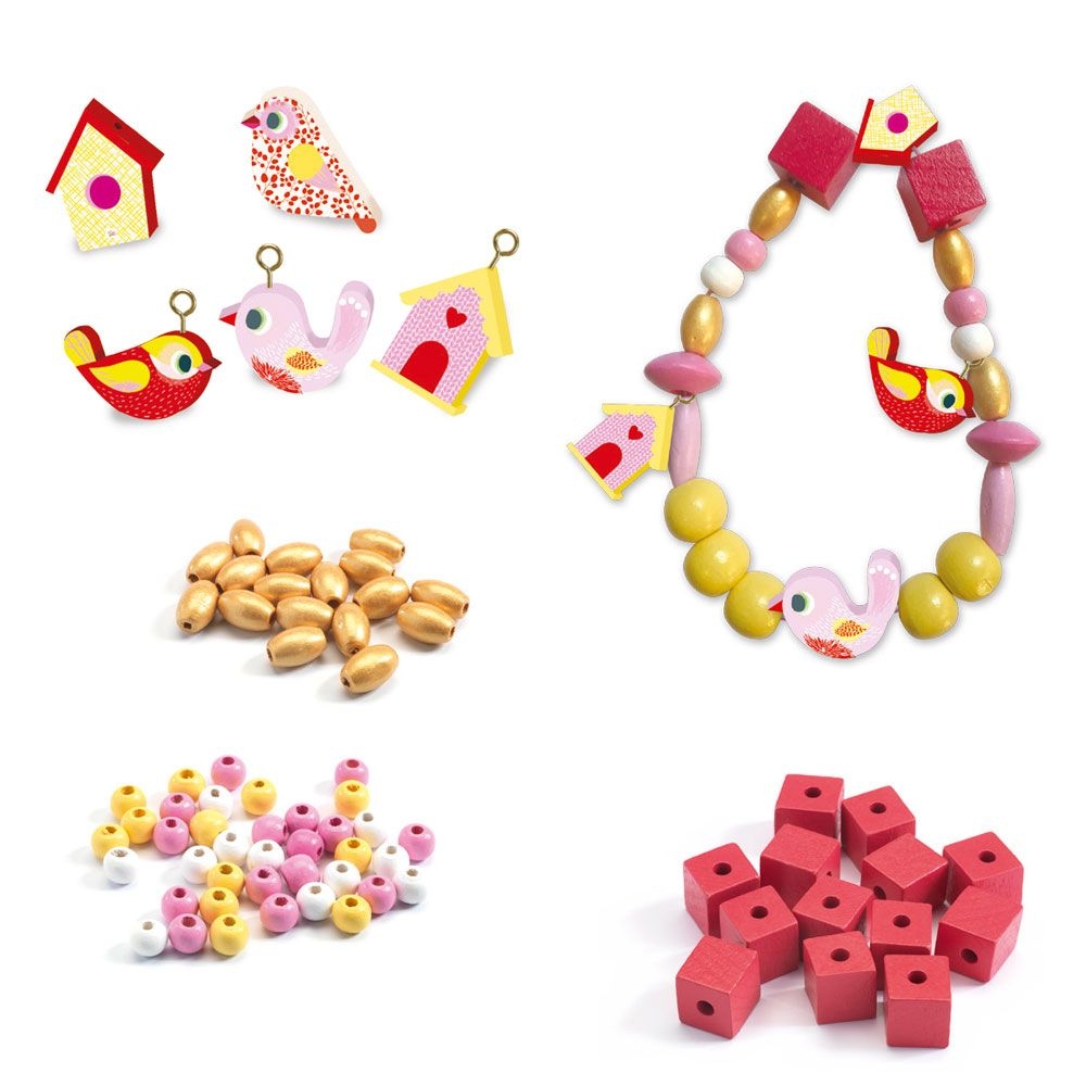 Χρησιμοποιήστε αυτό το όμορφο σύνολο από ξύλινες χάντρες της εταιρείας Djeco για να δημιουργήσετε υπέροχα κοσμήματα! Το σετ περιλαμβάνει μικρά, αγαπημένα πουλάκια, ξύλινα σπιτάκια καθώς και χάντρες σε παστέλ ροζ, φουξ και χρυσαφί χρώμα για να κάνετε υπέροχα βραχιόλια και περιδέραια! Μια ευχάριστη και δημιουργική απασχόληση, που εξάπτει τη φαντασία των παιδιών και τους επιτρέπει να εκφράσουν το προσωπικό τους στυλ μέσα από το παιχνίδι ενώ ενισχύει τις λεπτές κινητικές τους δεξιότητες, βοηθά στη συγκέντρωσή τους και αναπτύσσει την αυτοπεποίθησή τους.