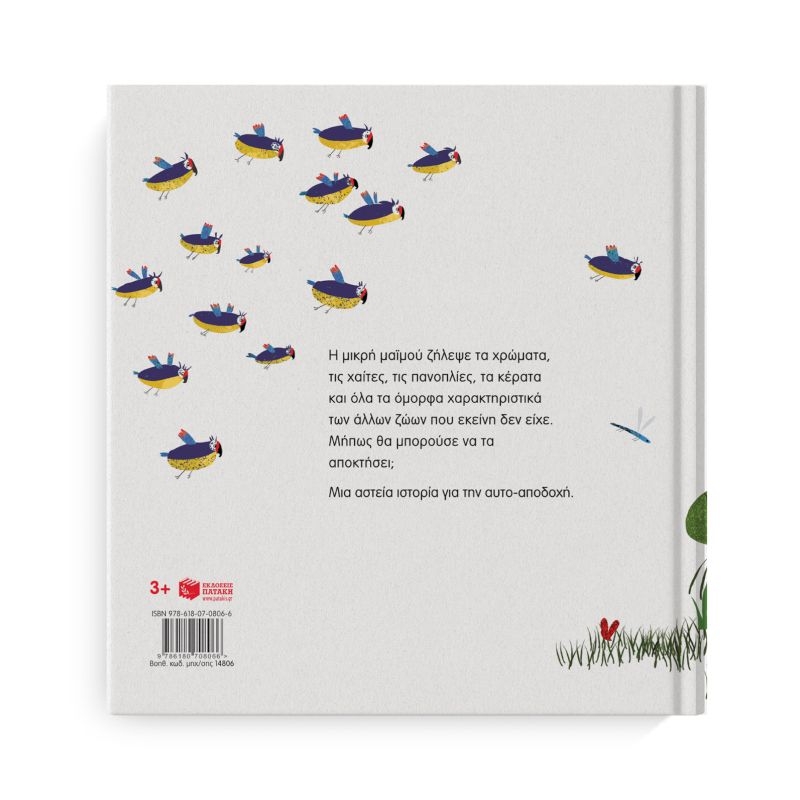 Η μικρή μαϊμού ζήλεψε τα χρώματα, τις χαίτες, τις πανοπλίες, τα κέρατα και όλα τα όμορφα χαρακτηριστικά των άλλων ζώων που εκείνη δεν είχε. Μήπως θα μπορούσε να τα αποκτήσει; Μια αστεία ιστορία για την αυτο-αποδοχή.