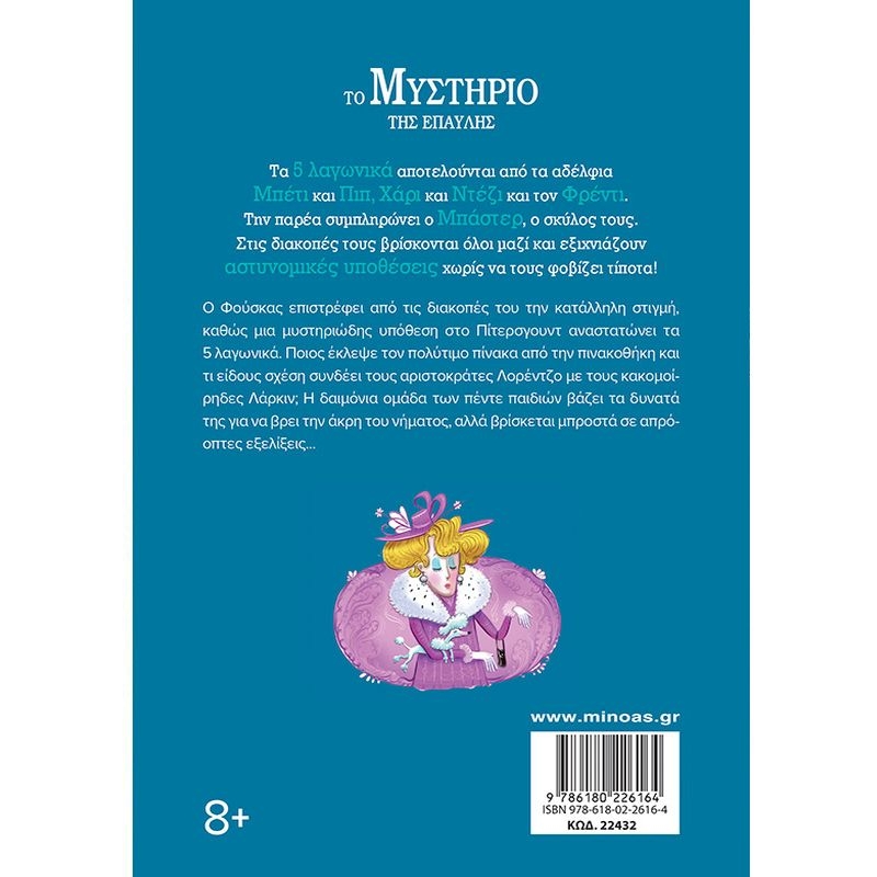 Τα 5 λαγωνικά αποτελούνται από τα αδέλφια Μπέτι και Πιπ, Χάρι και Ντέζι και τον Φρέντι. Την παρέα συμπληρώνει ο Μπάστερ, ο σκύλος τους. Στις διακοπές τους βρίσκονται όλοι μαζί και εξιχνιάζουν αστυνομικές υποθέσεις χωρίς να τους φοβίζει τίποτα! Ο Φούσκας επιστρέφει από τις διακοπές του την κατάλληλη στιγμή, καθώς μια μυστηριώδης υπόθεση στο Πίτερσγουντ αναστατώνει τα 5 λαγωνικά. Ποιος έκλεψε τον πολύτιμο πίνακα από την πινακοθήκη και τι είδους σχέση συνδέει τους αριστοκράτες Λορέντζο με τους κακομοίρηδες Λάρκιν; Η δαιμόνια ομάδα των πέντε παιδιών βάζει τα δυνατά της για να βρει την άκρη του νήματος, αλλά βρίσκεται μπροστά σε απρόοπτες εξελίξεις…