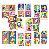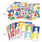 Περιλαμβάνει: 8 φύλλα με αυτοκόλλητα, 8 κάρτες προς συμπλήρωση με διαφορετικά σχέδια και εικονογραφημένες οδηγίες.