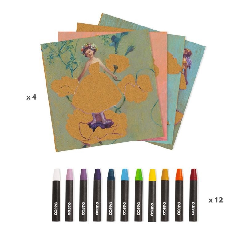 Εικαστική τεχνική με λαδοπαστέλ σε εικονογραφήσεις εμπνευσμένες από το στυλ του μεγάλου ιμπρεσιονιστή, Έντγκαρ Ντεγκά, από την εταιρεία Djeco. Τα παιδιά προσθέτουν σταδιακά χρώματα, στρώνοντάς τα για να δημιουργήσουν σκιές και φως στις πτυχές των ενδυμάτων και με αυτόν τον τρόπο κάνουν τους χορευτές να ζωντανέψουν.