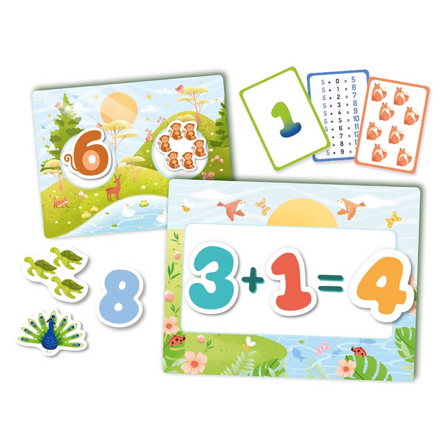 Χρησιμοποιήστε τους μαγνήτες και τα ταμπλό που βρίσκονται στη συσκευασία, για να δημιουργήσετε μοναδικές σκηνές και να βοηθήσετε τα παιδιά να μάθουν τους αριθμούς και να τους αντιστοιχίζουν με ένα ποσοτικό σύνολο, καθώς και να κατανοήσουν την βασική αριθμητική πράξη της πρόσθεσης. Ιδανικό για τα πρώτα μαθηματικά βήματα των μικρών μας φίλων!