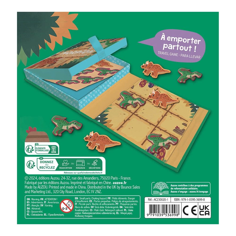 Μαγνητική τρίλιζα της εταιρίας Auzou. Πρόκειται για το κλασικό παιχνίδι με τα σύμβολα που βοηθάει τα παιδιά να αναπτύξουν τις ικανότητές τους στη στρατηγική σκέψη και στην επίλυση προβλημάτων. Σε μια μοναδική, μαγνητική εκδοχή ταξιδιού, με εικονογράφηση εμπνευσμένη από την εποχή των δεινοσαύρων.