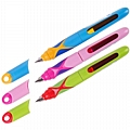 Πένα για παιδιά που έχει πλαστικό στέλεχος με ειδικό σχεδιασμό κρατήματος για να μάθετε πώς να γράφετε. Η εργονομική, απαλή, τριγωνική λαβή εξασφαλίζει άνετη χρήση και εύκολη γραφή. Τα διαφανή μέρη του στυλό σάς επιτρέπουν να ελέγχετε την κατανάλωση μελανιού το οποίο μπορεί να αντικατασταθεί όταν τελειώσει! Κομψή σχεδίαση με φωτεινά χρώματα. Ιδανική για τα πρώτα βήματα καλλιγραφίας στο σχολείο ή το σπίτι!