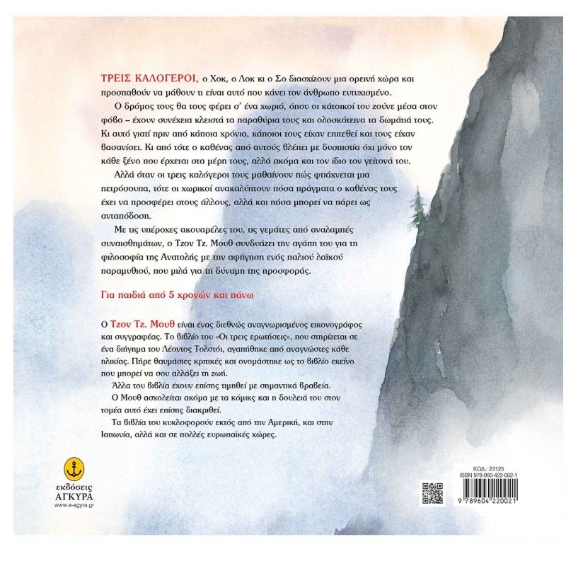 Τρεις καλόγεροι, ο Χοκ, ο Λοκ κι ο Σο διασχίζουν μια ορεινή χώρα και προσπαθούν να μάθουν τι είναι αυτό που κάνει τον άνθρωπο ευτυχισμένο. Ο δρόμος θα τους φέρει σ’ ένα χωριό, όπου οι κάτοικοί του ζούνε μέσα στο φόβο – έχουν συνέχεια κλειστά τα παραθύρια τους και ολοσκότεινα τα δωμάτιά τους. Κι αυτό γιατί πριν από κάποια χρόνια, κάποιοι τους είχαν επιτεθεί και τους είχαν βασανίσει. Κι από τότε ο καθένας από αυτούς βλέπει με δυσπιστία όχι μόνο τον κάθε ξένο που έρχεται στα μέρη τους, αλλά ακόμα και τον ίδιο τον γείτονά του. Αλλά όταν οι τρεις καλόγεροι μαθαίνουν πώς φτιάχνεται μια πετρόσουπα, τότε οι χωρικοί ανακαλύπτουν πόσα πράγματα ο καθένας τους έχει να προσφέρει στους άλλους, αλλά και πόσα μπορεί να πάρει ως ανταπόδοση.