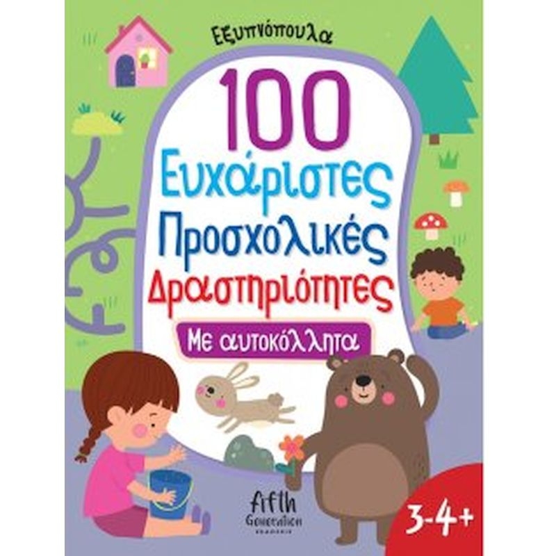Ένα βιβλίο με 100 ευχάριστες δραστηριότητες και αυτοκόλλητα. Τα παιδιά αναπτύσσουν τις δεξιότητές τους και βελτιώνουν σε μεγάλο βαθμό τη διαδικασία της γνωστικής σκέψης τους. Οι πολύχρωμες εικόνες είναι κατάλληλα διαμορφωμένες, έτσι ώστε το παιδί να παραμείνει συγκεντρωμένο και να μπει στη διαδικασία της μάθησης με ευχάριστο τρόπο.