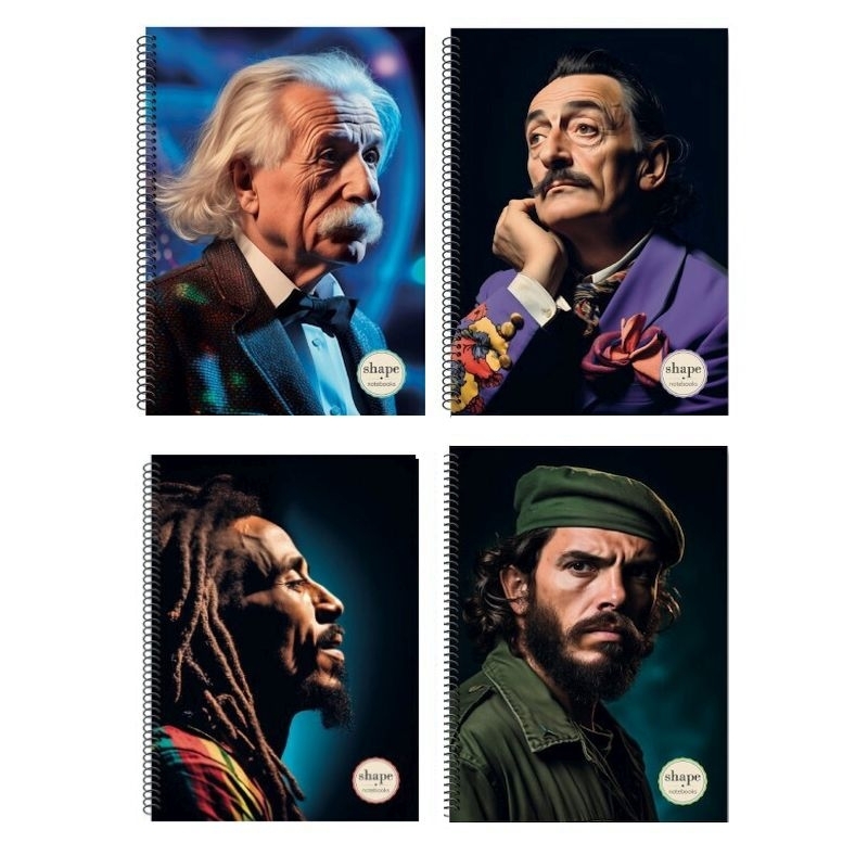 Τετράδιο σπιράλ 2 θεμάτων της σειράς Famous από την Shape σε 4 σχέδια. Διαθέτει εξώφυλλο από χαρτόνι και 60 ριγέ φύλλα 70gr.