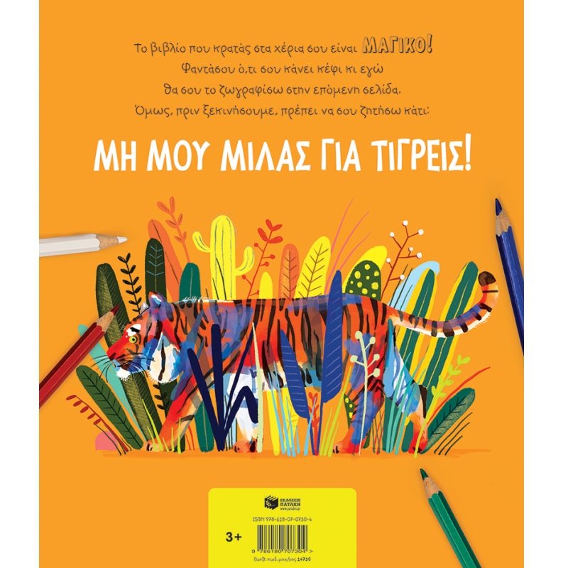 Το βιβλίο που κρατάς στα χέρια σου είναι ΜΑΓΙΚΟ! Φαντάσου ό,τι σου κάνει κέφι κι εγώ θα σου το ζωγραφίσω στην επόμενη σελίδα. Όμως, πριν ξεκινήσουμε, πρέπει να σου ζητήσω κάτι: ΜΗ ΜΟΥ ΜΙΛΑΣ ΓΙΑ ΤΙΓΡΕΙΣ!