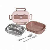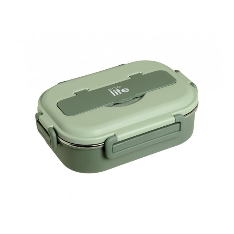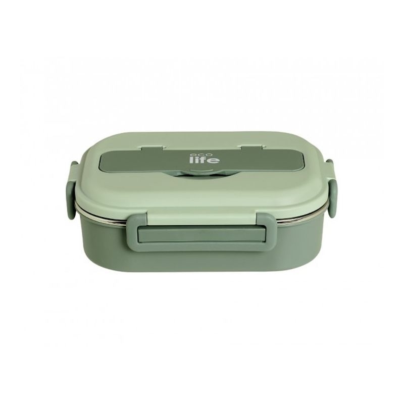 Φαγητοδοχείο Πλαστικό με Αποσπώμενο Inox Μπολάκι, Κουτάλι & Πιρούνι - Green (1000ml) - Ecolife