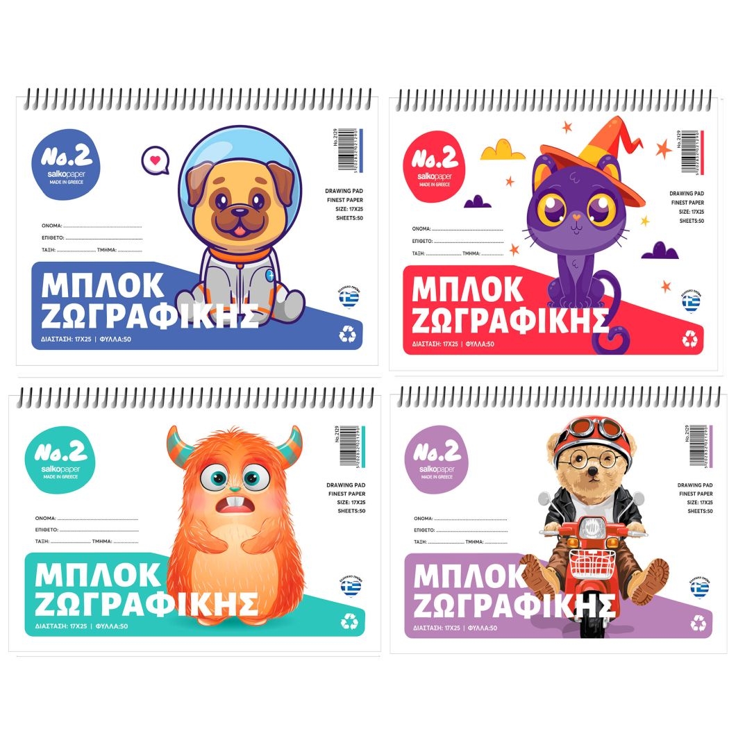 Μπλοκ ζωγραφικής σπιράλ No.20 με 50 φύλλα από την εταιρία Salkopaper με τυπωμένη ετικέτα στο εξώφυλλο για τα στοιχεία του παιδιού σας!