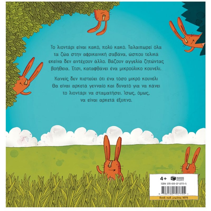 Το λιοντάρι είναι κακό, πολύ κακό. Ταλαιπωρεί όλα τα ζώα στην αφρικανική σαβάνα, ώσπου τελικά εκείνα δεν αντέχουν άλλο. Βάζουν αγγελία ζητώντας βοήθεια. Έτσι, καταφθάνει ένα μικρούλικο κουνέλι. Κανείς δεν πιστεύει ότι ένα τόσο μικρό κουνέλι θα είναι αρκετά γενναίο και δυνατό για να κάνει το λιοντάρι να σταματήσει. Ίσως, όμως, να είναι αρκετά έξυπνο.