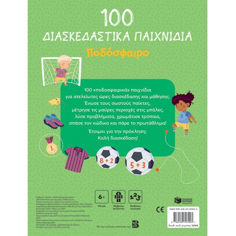 100 «ποδοσφαιρικά» παιχνίδια για ατελείωτες ώρες διασκέδασης και μάθησης. Ένωσε τους σωστούς παίκτες, μέτρησε τις μαύρες περιοχές στις μπάλες, λύσε προβλήματα, χρωμάτισε τρόπαια, σπάσε τον κώδικα και πάρε το πρωτάθλημα! Έτοιμοι για την πρόκληση; Καλή διασκέδαση!