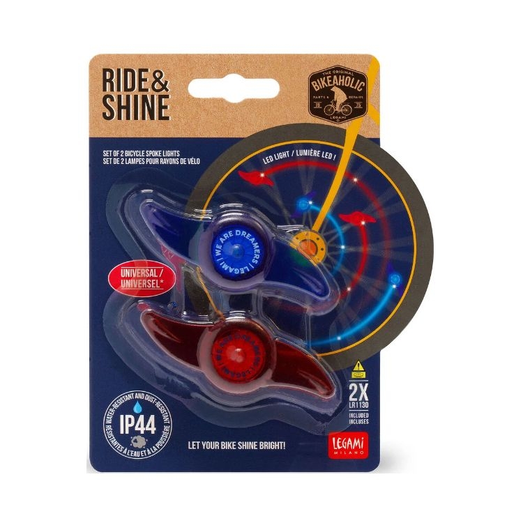 Απλά κάντε πετάλι! Κάθε περιστροφή λαμπυρίζει με το Σετ 2 ακτίνων ποδηλάτου - Ride & Shine από τη Legami! Χάρη στα κλιπ, τα φώτα ποδηλάτου μπορούν να στερεωθούν στις ακτίνες του και να αφαιρεθούν αστραπιαία. Είστε έτοιμοι να δημιουργήσετε φωτεινές βόλτες με κάθε πεταλιά;