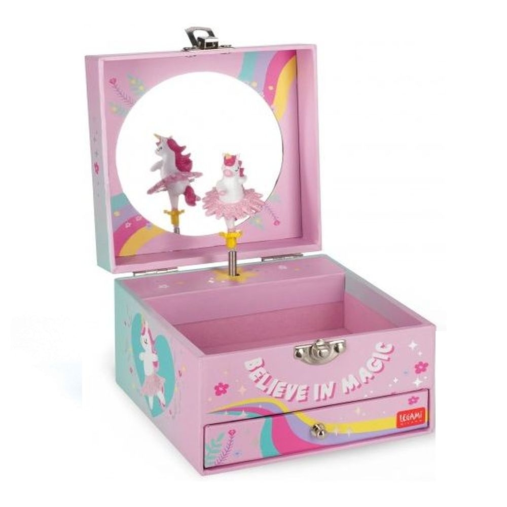Όλοι έχουμε ονειρευτεί να ανοίξουμε ένα μουσικό κουτί και να βρούμε μια μπαλαρίνα να περιστρέφεται στο χρόνο παρέα με τη μελωδία. Ελάχιστοι όμως τολμήσαμε να ονειρευτούμε ότι η μπαλαρίνα ήταν μονόκερος! Η Legami δημιούργησε το Musical Jewellery Box με καθρέφτη και τη ρομαντική μελωδία του "Moon River". Πιστεύεις στη μαγεία τώρα;