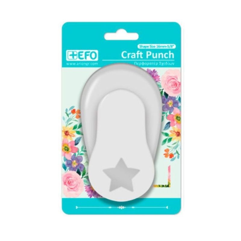 Κόψτε αστεράκια από χαρτί, χαρτόνι και αφρώδες και πασπαλίστε με αγάπη τις χειροτεχνίες σας εύκολα με το περφορατέρ σχήματος αστεριού της +Efo. Συμπαγές και εύκολο στην χρήση. Κατάλληλο για χαρτί, χαρτόνι και αφρώδες υλικό 2mm.