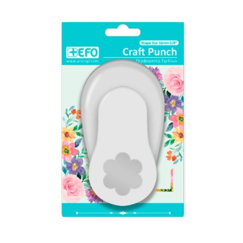 Κόψτε λουλούδια από χαρτί, χαρτόνι και αφρώδες και πασπαλίστε με αγάπη τις χειροτεχνίες σας εύκολα με το περφορατέρ σχήματος λουλουδιού της +Efo. Συμπαγές και εύκολο στην χρήση. Κατάλληλο για χαρτί, χαρτόνι και αφρώδες υλικό 2mm.