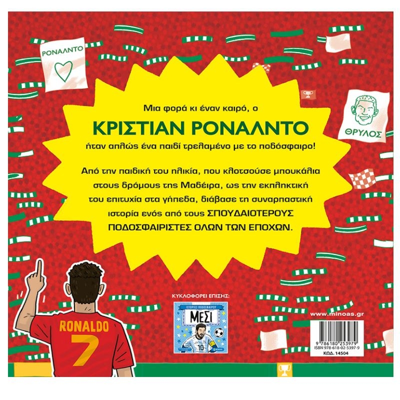 Μια φορά κι έναν καιρό, ο ΚΡΙΣΤΙΑΝ ΡΟΝΑΛΝΤΟ ήταν απλώς ένα παιδί τρελαμένο με το ποδόσφαιρο! Από την παιδική του ηλικία, που κλοτσούσε μπουκάλια στους δρόμους της Μαδέιρα, ως την εκπληκτική του επιτυχία στα γήπεδα, διάβασε τη συναρπαστική ιστορία ενός από τους ΣΠΟΥΔΑΙΟΤΕΡΟΥΣ ΠΟΔΟΣΦΑΙΡΙΣΤΕΣ ΟΛΩΝ ΤΩΝ ΕΠΟΧΩΝ.