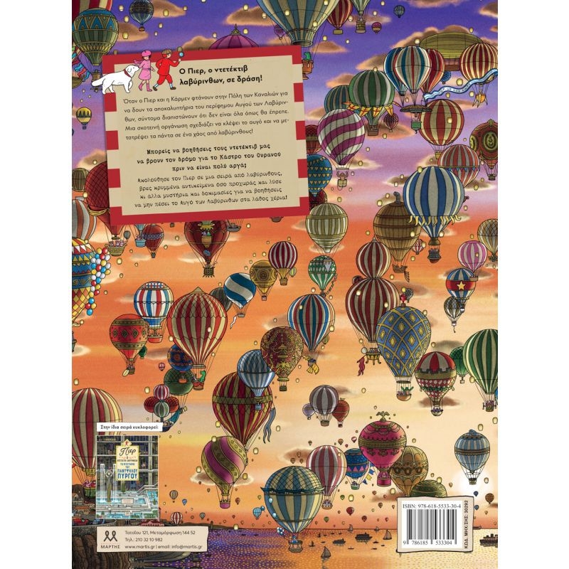 O Πιερ, ο ντετέκτιβ λαβύρινθων, σε δράση! Όταν ο Πιερ και η Κάρμεν φτάνουν στην Πόλη των Καναλιών για να δουν τα αποκαλυπτήρια του περίφημου Αυγού των Λαβύρινθων, σύντομα διαπιστώνουν ότι δεν είναι όλα όπως θα έπρεπε. Μια σκοτεινή οργάνωση σχεδιάζει να κλέψει το αυγό και να μετατρέψει τα πάντα σε ένα χάος από λαβύρινθους! Μπορείς να βοηθήσεις τους ντετέκτιβ μας να βρουν τον δρόμο για το Κάστρο του Ουρανού πριν να είναι πολύ αργά; Ακολούθησε τον Πιερ σε μια σειρά από λαβύρινθους, βρες κρυμμένα αντικείμενα όσο προχωράς και λύσε κι άλλα μυστήρια και δοκιμασίες για να βοηθήσεις να μην πέσει το Αυγό των Λαβύρινθων στα λάθος χέρια!