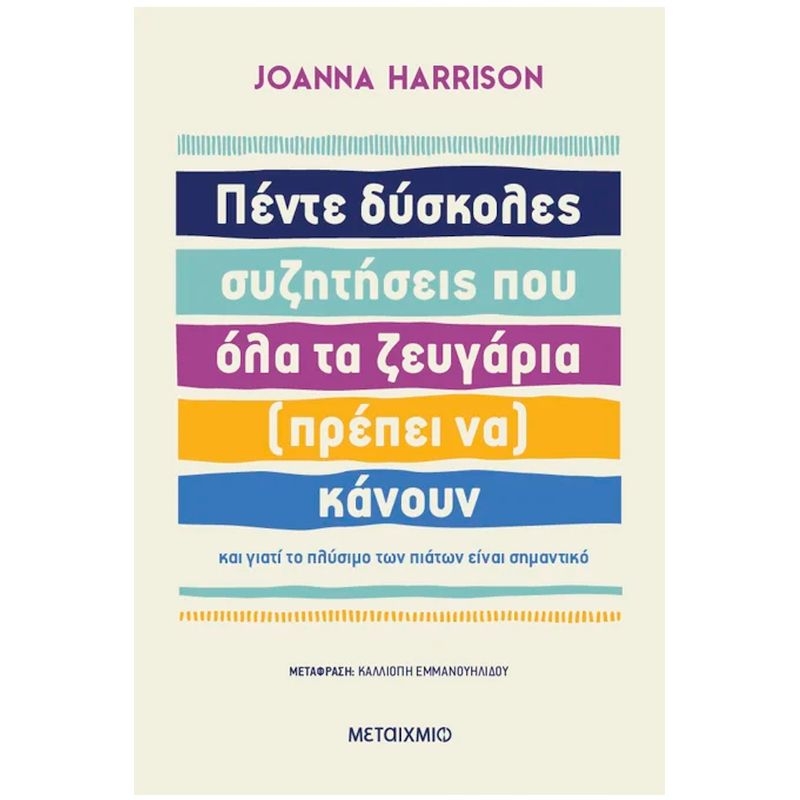 Η Joanna Harrison, αξιοποιώντας την πολύχρονη πείρα της στη θεραπεία ζεύγους, διακρίνει τα πέντε βασικά ζητήματα που κάθε ζευγάρι πρέπει να ξεκαθαρίσει (και να λύσει) για να έχει μια υγιή και λειτουργική σχέση. Με εύστοχες συμβουλές και πολλά παραδείγματα, βοηθάει τα ζευγάρια να κατανοήσουν πως, ακόμα κι αν η συζήτηση γύρω από αυτά τα θέματα προκαλεί ένταση, είναι απαραίτητη, για να δυναμώσει η σχέση τους και να έρθουν πιο κοντά ο ένας στον άλλο.