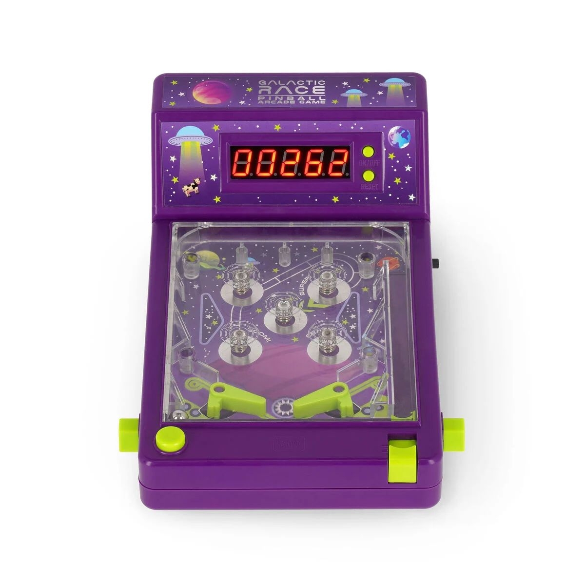 Ανεξάρτητα από το πόσο χρονών είστε, δεν μπορείτε να αντισταθείτε στην πρόκληση του παιχνιδιού Pinball Arcade - Galactic Race από τη Legami. Αυτό το διασκεδαστικό vintage επιτραπέζιο μηχάνημα φλίπερ ζωντανεύει τη παιδικές μας αναμνήσεις με έναν φωτεινό ηλεκτρονικό πίνακα σκορ και μια ασταμάτητη επιθυμία για νίκη που γεφυρώνει τις γενιές!