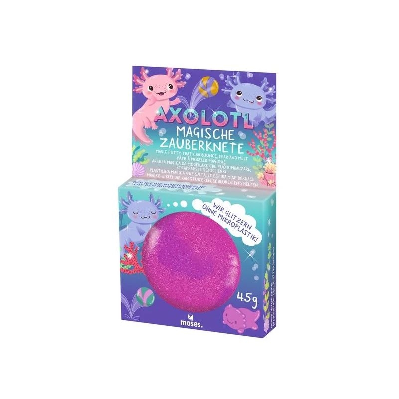 Ο μαγικός πηλός axolotl προσφέρει δημιουργική διασκέδαση. Μπορεί να διαμορφωθεί, να τεντωθεί, να γίνει τρελό-μπάλα και να σκιστεί, καθιστώντας το ιδανικό για ευφάνταστο παιχνίδι. Η ζύμη δεν στεγνώνει και είναι επαναχρησιμοποιήσιμη. Ιδανικό για τα παιδιά να αναπτύξουν τις κινητικές τους δεξιότητες και να απελευθερώσουν τη δημιουργικότητά τους.