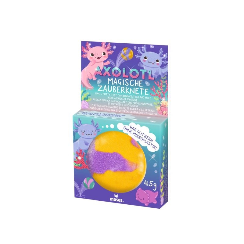 Ο μαγικός πηλός axolotl προσφέρει δημιουργική διασκέδαση. Μπορεί να διαμορφωθεί, να τεντωθεί, να γίνει τρελό-μπάλα και να σκιστεί, καθιστώντας το ιδανικό για ευφάνταστο παιχνίδι. Η ζύμη δεν στεγνώνει και είναι επαναχρησιμοποιήσιμη. Ιδανικό για τα παιδιά να αναπτύξουν τις κινητικές τους δεξιότητες και να απελευθερώσουν τη δημιουργικότητά τους.
