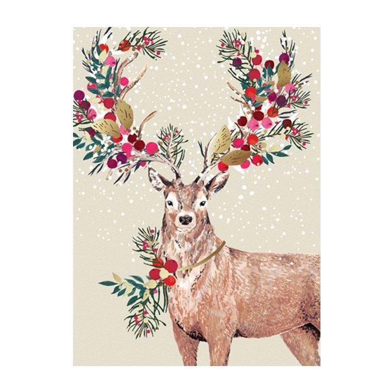 Χριστουγεννιάτικη ευχετήρια κάρτα με χρυσοτυπία και σχέδιο ένα ταράνδο. Η Αγγλίδα σχεδιάστρια Louise Tiler έχει υπόγραψει αρκετές κάρτες για μεγαλή ποικίλια περιστάσεων.