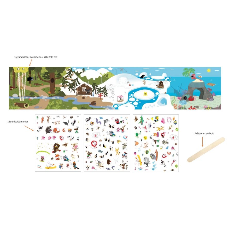 Χρησιμοποιήστε την φαντασία σας και δημιουργήστε εικόνες με τις χαλκομανίες της εταιρίας Αuzou! Επιλέξτε την χαλκομανία που θέλετε, τοποθετήστε την πάνω στο χαρτί και ξύστε την με το ξυλάκι. Η εικόνα θα αποτυπωθεί στο φόντο που έχετε επιλέξει! Το σετ περιλαμβάνει 1 αφίσα ακορντεόν με 3 διαφορετικά τοπία και 3 φύλλα με 150 χαλκομανίες για να διακοσμήσετε.