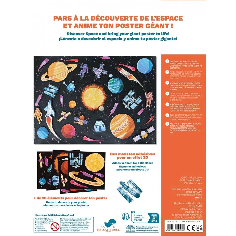 Γνωρίστε και ανακαλύψτε το διάστημα, χρησιμοποιώντας τα 30 αυτοκόλλητα που περιέχονται στη συσκευασία και τα οποία θα σας βοηθήσουν να ζωντανέψετε τη γιγαντοαφίσα του διαστήματος. Χάρη στα αυτοκόλλητα αφρού, η αφίσα σας έχει 3D αποτέλεσμα! Στη συνέχεια, κολλήστε την αφίσα σας στο δωμάτιό σας για μια υπέροχη διακόσμηση!