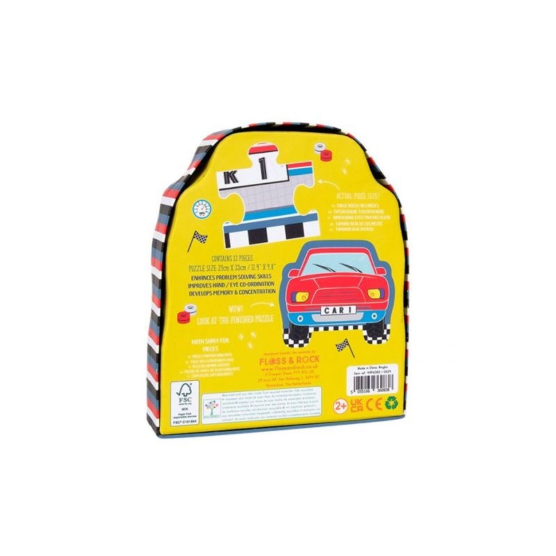 Ένα όμορφο παζλ από την Floss & Rock με θέμα τα αυτοκίνητα! Το παζλ είναι σε σχήμα Αυτοκίνητου και αποτελείται από 12 κομμάτια με λαμπερές λεπτομέρειες. Τα διάφορα χρώματα και σχήματα είναι ιδανικά για την καλλιέργεια συντονισμού χεριού-ματιού!
