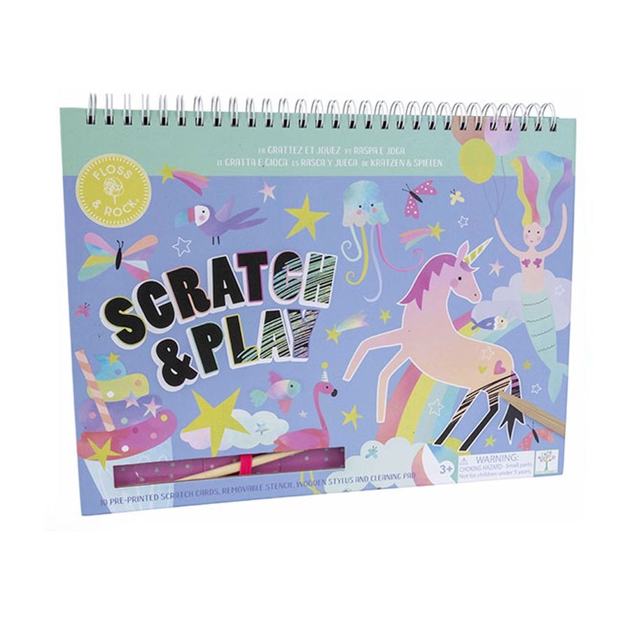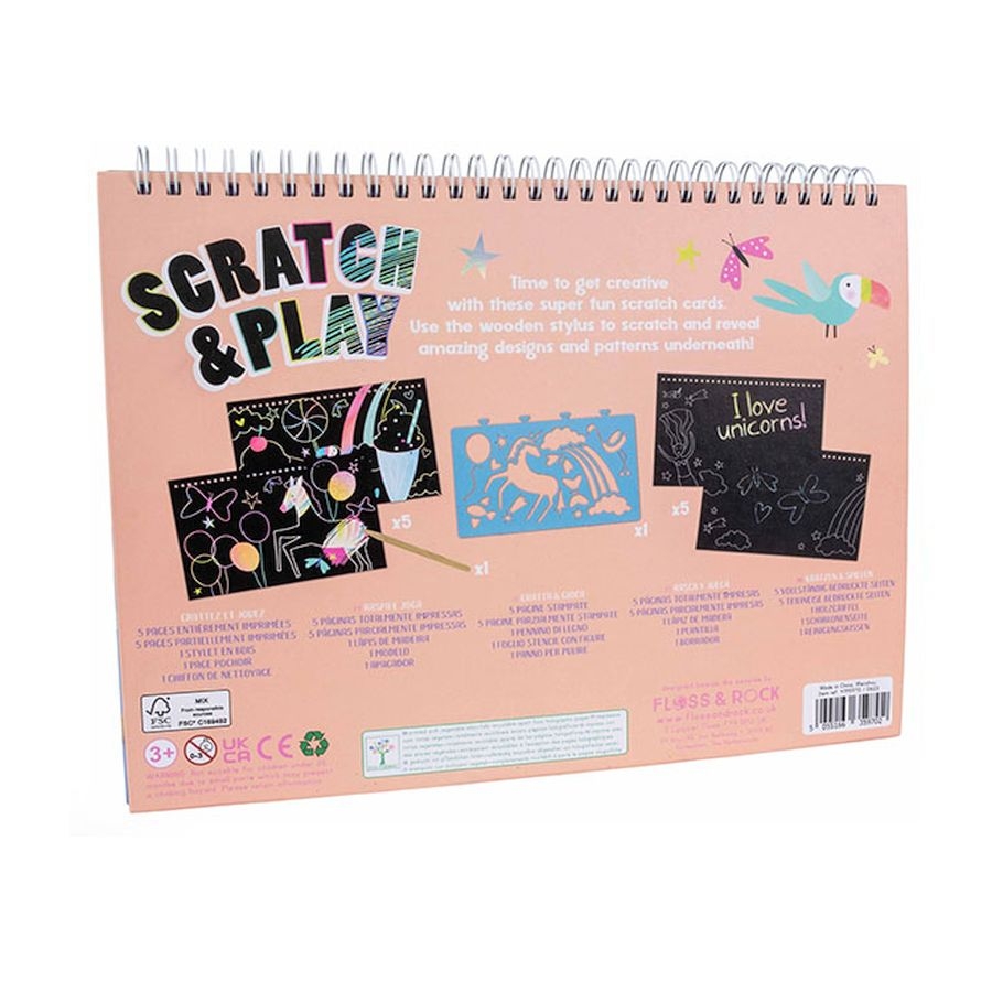 Ξύστε και παίξτε! Ατελείωτες ώρες δημιουργικής διασκέδασης που μπορείτε να απολαύσετε με αυτά τα βιβλία με σπειροειδή βιβλιοδεσία. Μέσα θα βρείτε 10 προεκτυπωμένα φύλλα που περιέχουν γοργόνες, πεταλούδες, μονοκέρους, ουράνιο τόξο και πόλλα αλλά. Χρησιμοποιώντας την ξύλινη γραφίδα που περιλαμβάνεται, μπορείτε να ξύσετε για να «χρωματίσετε», να δημιουργήσετε νέες γραμμές ή χρωματιστά σχήματα. Η κάρτα στένσιλ που περιλαμβάνεται μπορεί να αφαιρεθεί και να τοποθετηθεί οπουδήποτε στο βιβλίο, πράγμα που σημαίνει ότι μπορείτε να ακολουθήσετε τις οδηγίες για να ξύσετε τους μονόκερους, τα ουράνια τόξα, φλαμίνγκο και πολλά αλλά που απεικονίζονται!