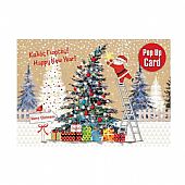 Η POP-UP Χριστουγεννιάτικη κάρτα με λεκτικό "Καλές γιορτές- Happy New Year" περιέχεται σε ένα σελοφάν μαζί με ένα κόκκινο φάκελο. Ανοίγει ως αναδυόμενη και εμφανίζεται το σχέδιο της εικόνας.