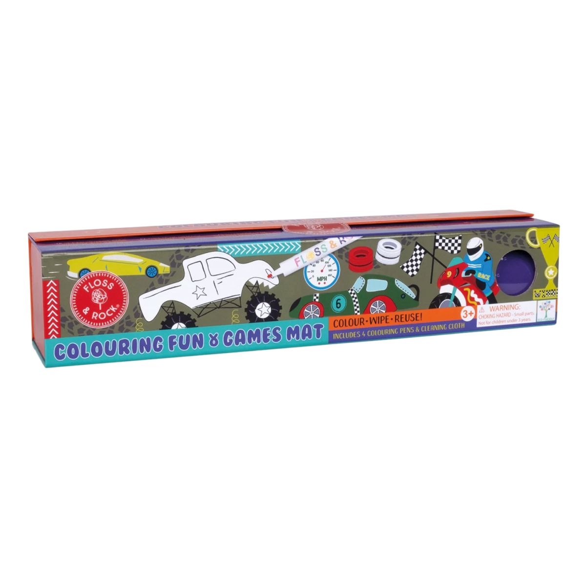 Μεγεθύνετε τη δημιουργικότητα με το Floss & Rock Activity Mat Pack – Cars! Αυτό το συναρπαστικό σετ διαθέτει ένα επαναχρησιμοποιήσιμο χαλάκι δραστηριότητας διακοσμημένο με όμορφα σχέδια αυτοκινήτων, τέσσερα πολύχρωμα στυλό ασπροπίνακα και ένα βολικό πανί καθαρισμού. Ιδανικό για παιδιά ηλικίας 3 ετών και άνω, αυτό το χαλάκι επιτρέπει στα παιδιά να χρωματίσουν, να παίξουν τρίλιζα, να ενώσουν τελείες, να βγουν από λαβυρίνθους και στο τέλος να καθαρίσουν και να ξεκινήσουν ξανά για ατελείωτες ώρες διασκέδασης. Φτιαγμένο με φιλικά προς το περιβάλλον υλικά. Είτε στο σπίτι είτε εν κινήσει, το χαλάκι δραστηριότητας με θέμα τα αυτοκίνητα προσφέρει απεριόριστη ψυχαγωγία, ενθαρρύνοντας το παιχνίδι της φαντασίας και τη δημιουργική έκφραση.