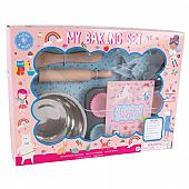 Αυτό το πολύ χαριτωμένο σετ ψησίματος είναι ένα υπέροχο δώρο για εκκολαπτόμενους αρτοποιούς και δημιουργικούς μικρούς καλοφαγάδες. Περιλαμβάνει ένα φυλλάδιο συνταγών, 3 κουπάτ για μπισκότα, 1 πλάστη, 1 σύρμα, 1 κουταλιά ανάμειξης, 1 μπολ και 24 θήκες για cupcakes. Απολαύστε ώρες διασκέδασης στην κουζίνα με αυτό το εξαιρετικό σετ μαγειρικής. Ένα σετ τυπωμένο με μελάνια σόγιας και πλήρως ανακυκλώσιμο.