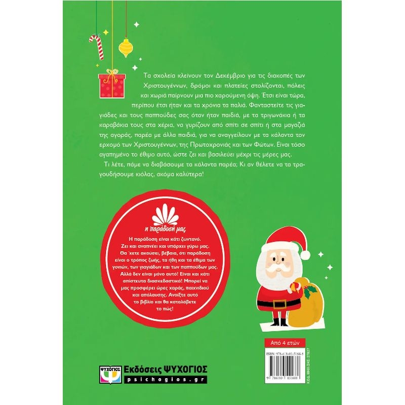 Η παράδοση είναι κάτι ζωντανό. Ζει και αναπνέει και υπάρχει γύρω μας. Θα ’χετε ακούσει, βέβαια, ότι παράδοση είναι ο τρόπος ζωής, τα ήθη και τα έθιμα των γονιών, των γιαγιάδων και των παππούδων μας. Αλλά δεν είναι μόνο αυτό! Είναι και κάτι απίστευτα διασκεδαστικό! Μπορεί να μας προσφέρει ώρες χαράς, παιχνιδιού και απόλαυσης. Ανοίξτε αυτό το βιβλίο και θα καταλάβετε!
