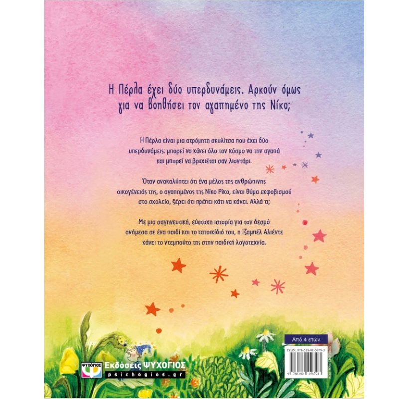 Η Πέρλα έχει δύο υπερδυνάμεις. Αρκούν όμως για να βοηθήσει τον αγαπημένο της Νίκο; Η Πέρλα είναι μια ατρόμητη σκυλίτσα που έχει δύο υπερδυνάμεις: μπορεί να κάνει όλο τον κόσμο να την αγαπά και μπορεί να βρυχιέται σαν λιοντάρι. Όταν ανακαλύπτει ότι ένα μέλος της ανθρώπινης οικογένειάς της, ο αγαπημένος της Νίκο Ρίκο, είναι θύμα εκφοβισμού στο σχολείο, ξέρει ότι πρέπει κάτι να κάνει. Αλλά τι; Με μια σαγηνευτική, εύστοχη ιστορία για τον δεσμό ανάμεσα σε ένα παιδί και το κατοικίδιό του, η Ιζαμπέλ Αλιέντε κάνει το ντεμπούτο της στην παιδική λογοτεχνία.